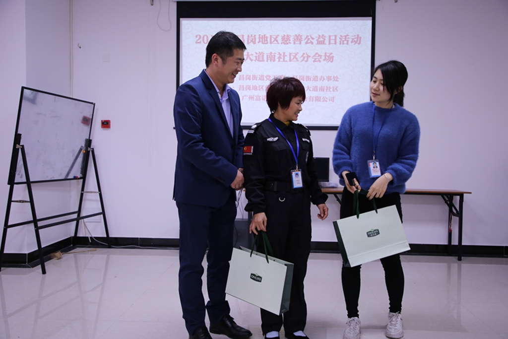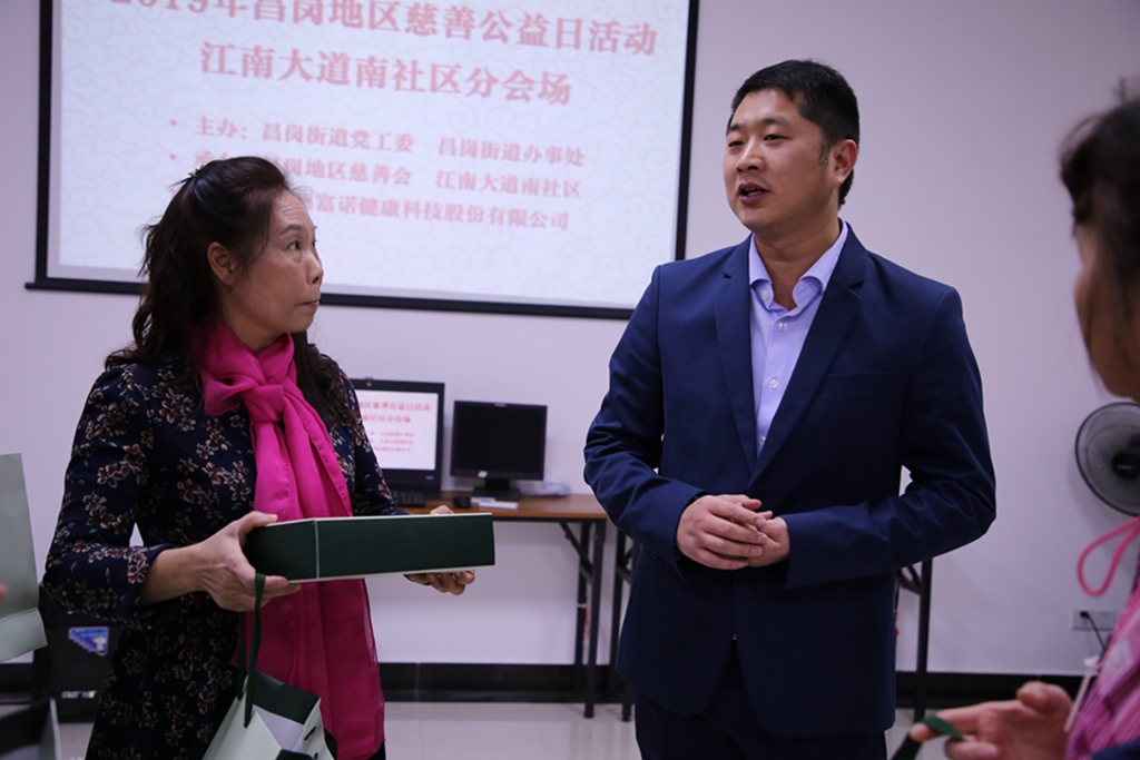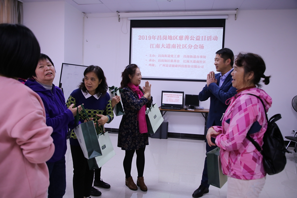 當富諾健康領導將精心準備的新年健康禮盒親手送到每位老人手中時,老人們臉上洋溢著幸福的笑容。海珠區江南大道南社區居委會主任麥巧云女士代表全體老人對富諾健康企業的關愛之情表示衷心的感謝。