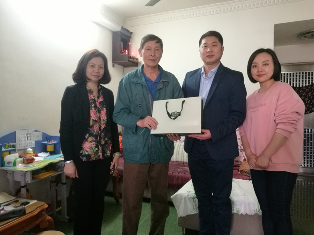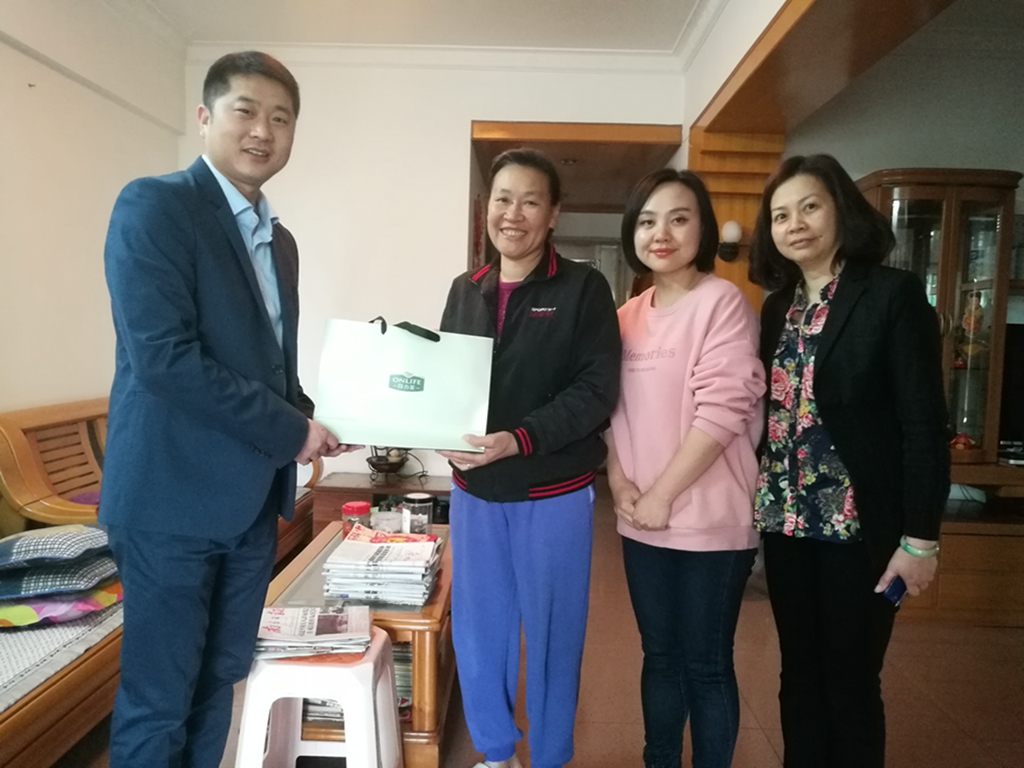 如果說能溫暖人身體的是火,那能溫暖人心的一定是愛。1月28日(正值小年),廣州富諾健康科技股份有限公司積極組織開展“凝聚愛心,傳遞溫暖”公益活動,富諾健康總經理助理程前鵬、海珠區民政科科長徐艷、江南大道南社區居委會主任麥巧云領導一行走訪了海珠區昌崗街道慰問困難家庭和老黨員,為他們送上慰問品和節日的祝福。